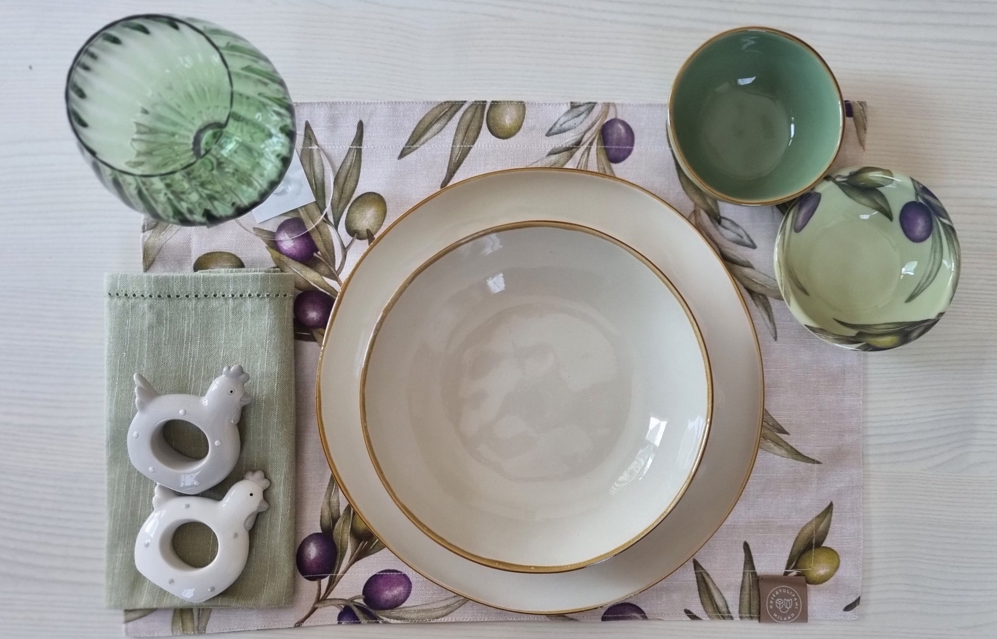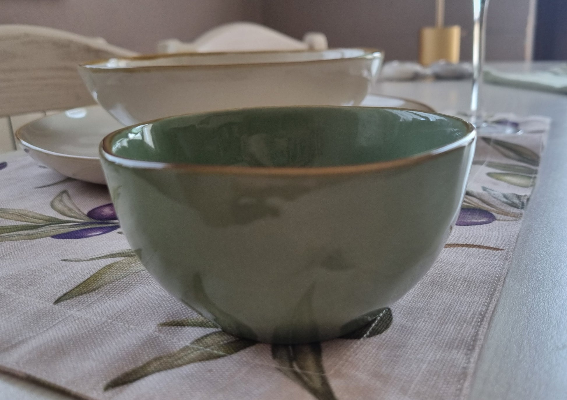 Un'intensa sfumatura di verde, ispirata ai suggestivi panorami mediterranei. Una cromia rilassante che richiama la natura e dona alla tavola calore e positività. E' perfetta da sola o da abbinare.