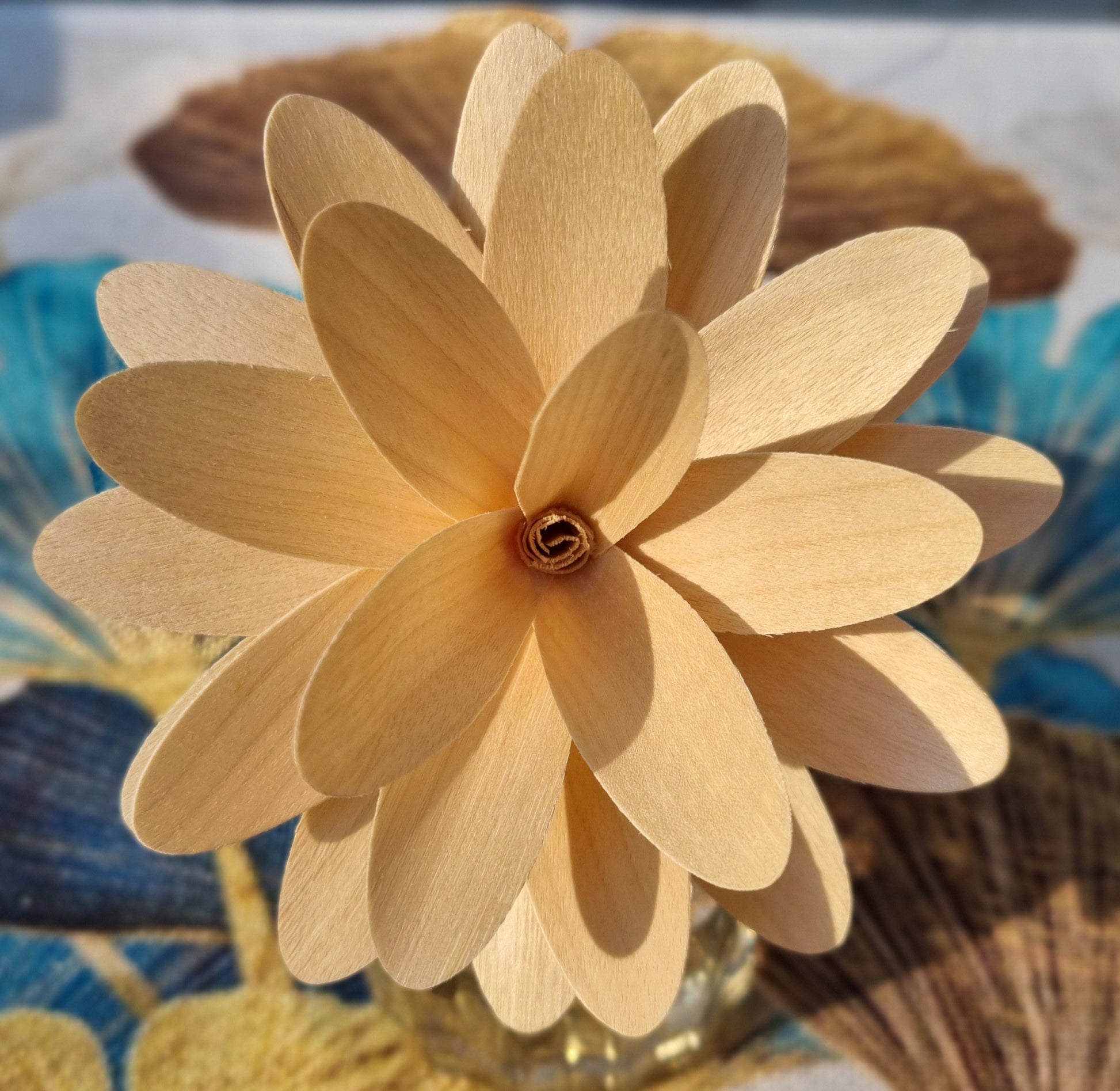 di fiore in legno di betulla realizzato a mano. Completo di pipetta contagocce per prelevare del profumo da mettere sui petali per un profumo più intenso.