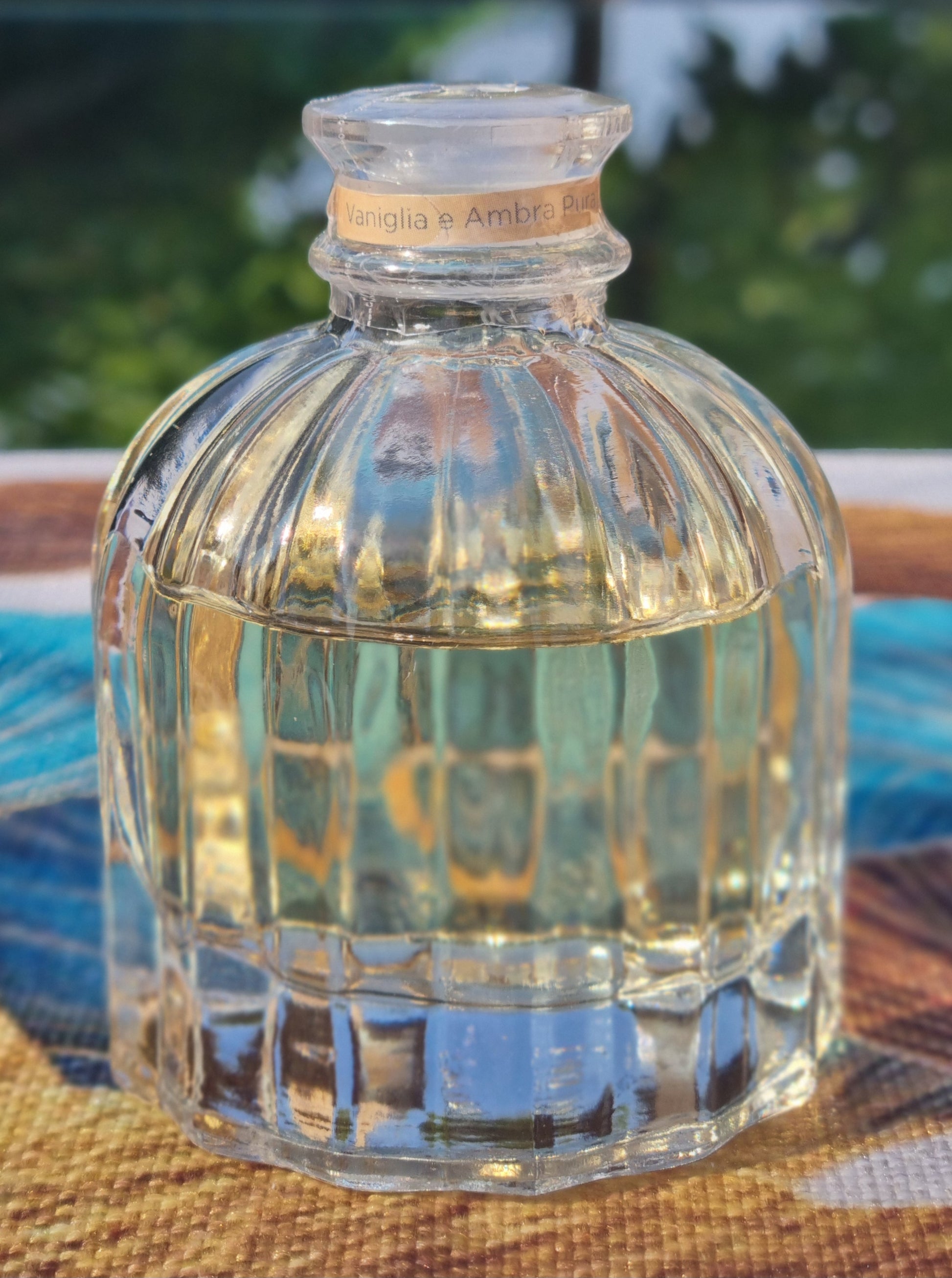 La morbida nota calda della mirra richiama alla mente atmosfere lontane e mistiche unita all'energia dell’arancio amaro, svelano un cuore di talco seducente e si adagiano su sentori di vaniglia, ambra e sandalo.