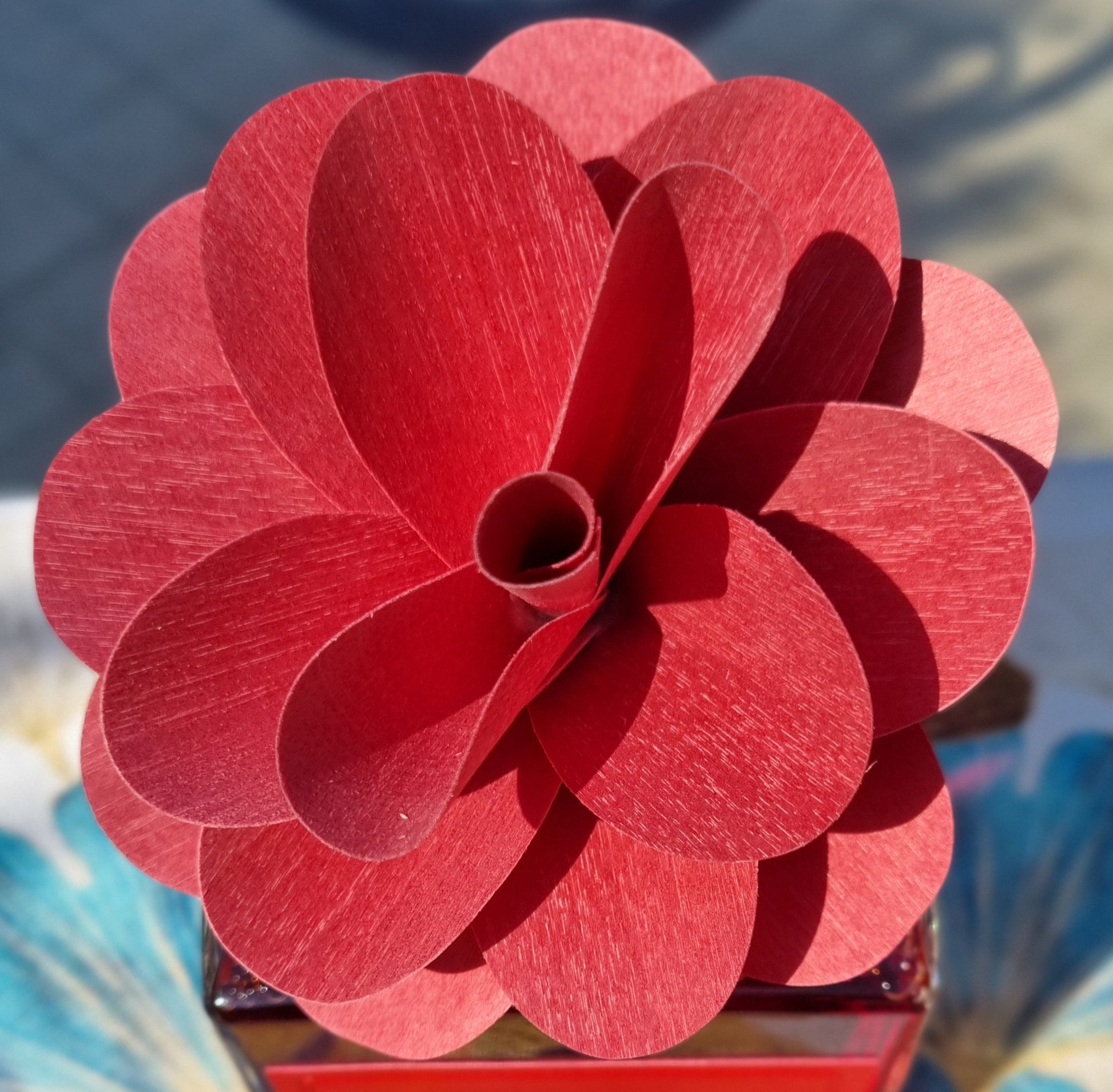 di camelia in legno di betulla realizzato a mano. Completo di pipetta contagocce per prelevare del profumo da mettere sui petali per un profumo più intenso.