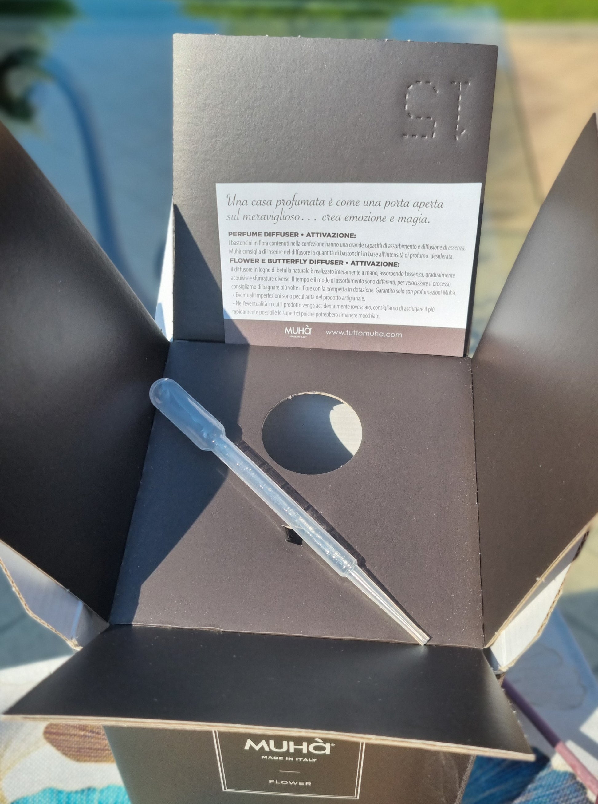 di fiore in legno di betulla realizzato a mano. Completo di pipetta contagocce per prelevare del profumo da mettere sui petali per un profumo più intenso.