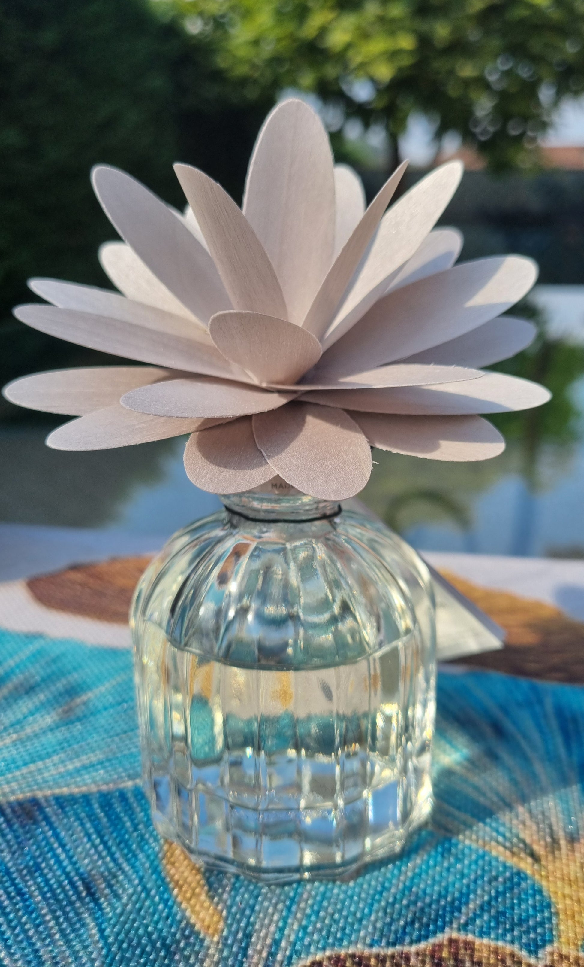 di fiore in legno di betulla realizzato a mano. Completo di pipetta contagocce per prelevare del profumo da mettere sui petali per un profumo più intenso.