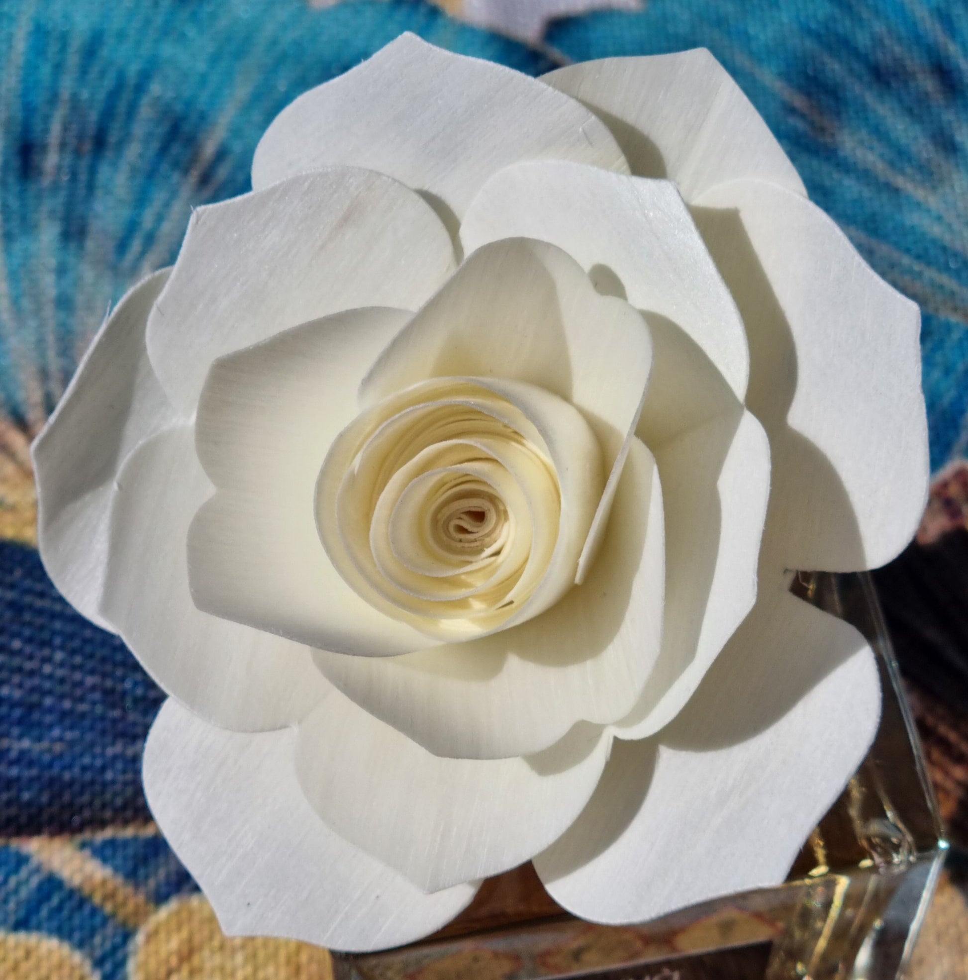di rosa in legno di betulla realizzato a mano. Completo di pipetta contagocce per prelevare del profumo da mettere sui petali per un profumo più intenso.