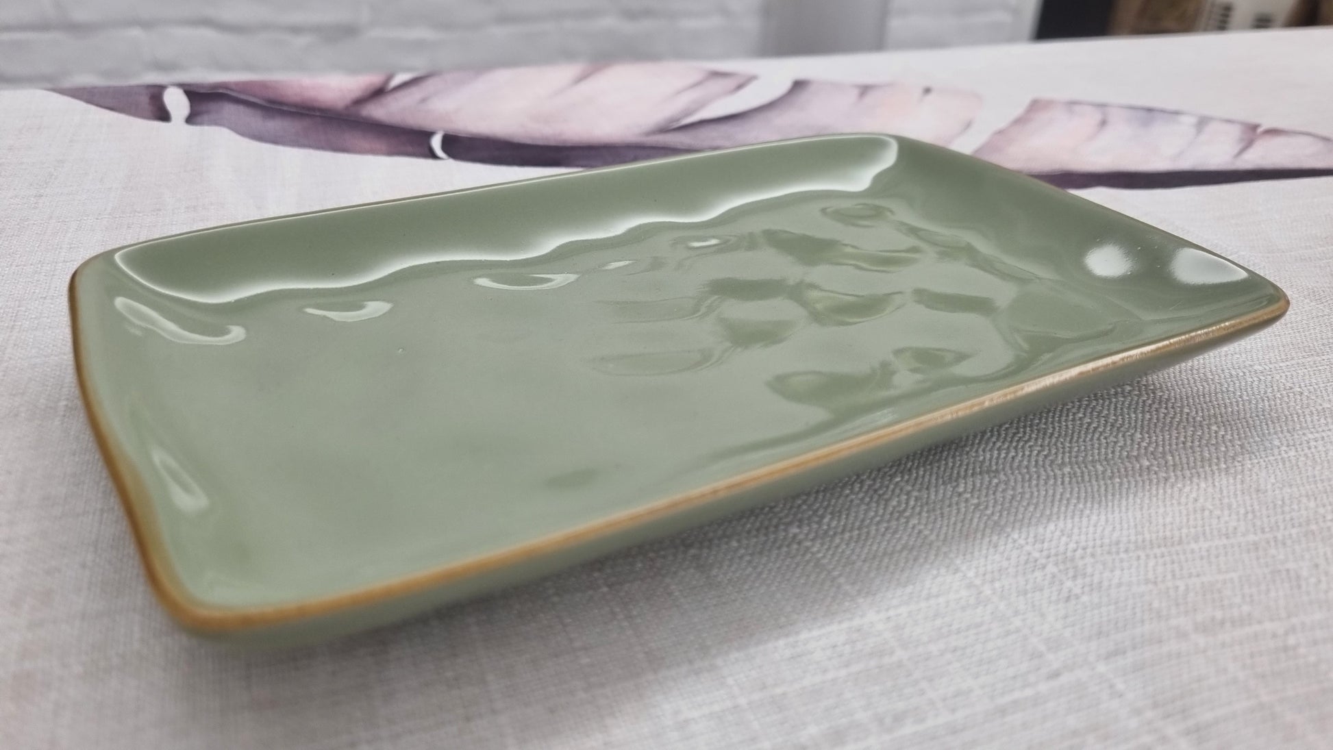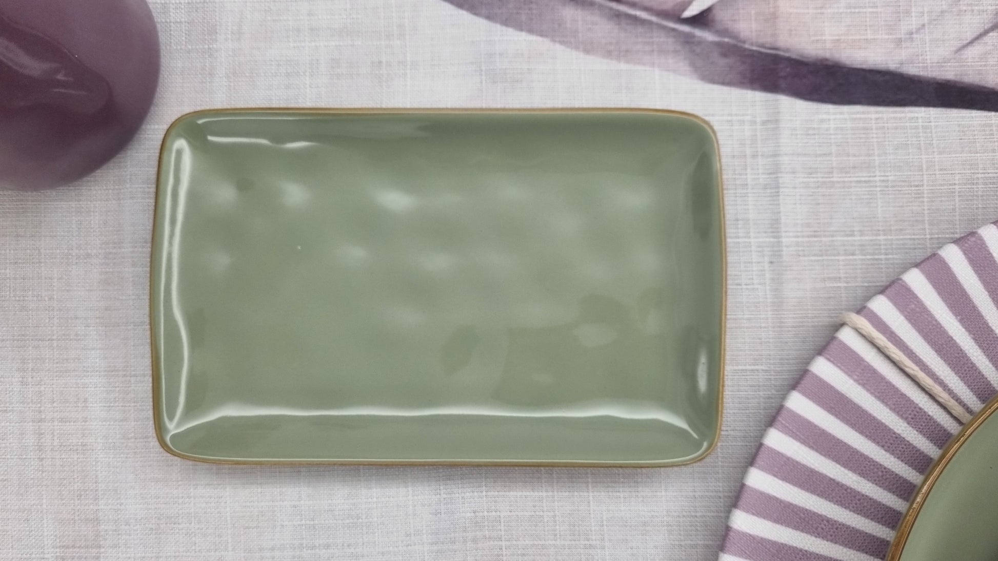 Vassoio rettangolare color verde oliva, in gres porcellanato.